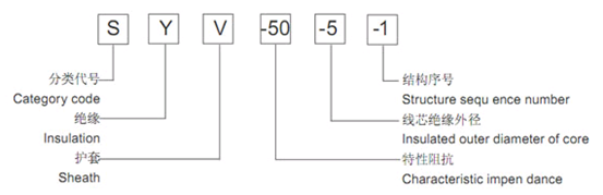 S:射频,Y:聚乙烯绝缘,W:物理发泡,V:聚氯乙烯护套